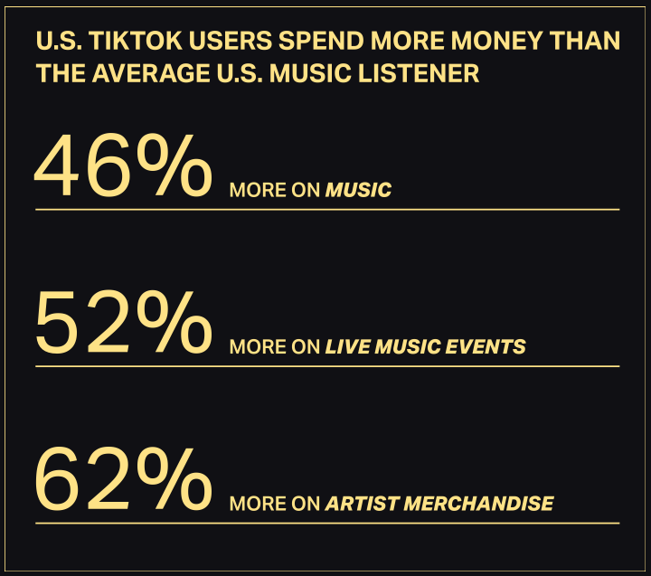 - TikTok geben insgesamt 46 % mehr Geld für Musik aus,