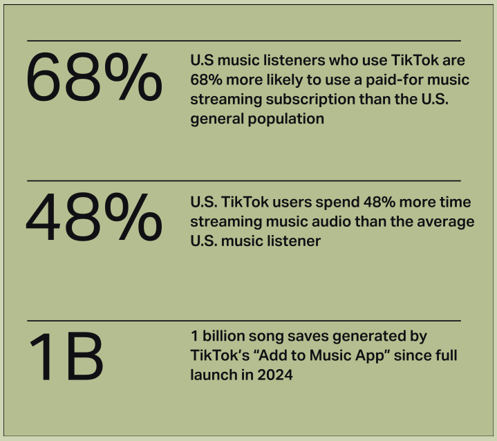 Die Daten machen es kristallklar: TikTok ist ein mächtiger Motor für moderne Musikentdeckung, Fanausgaben und Streaming-Erfolg.